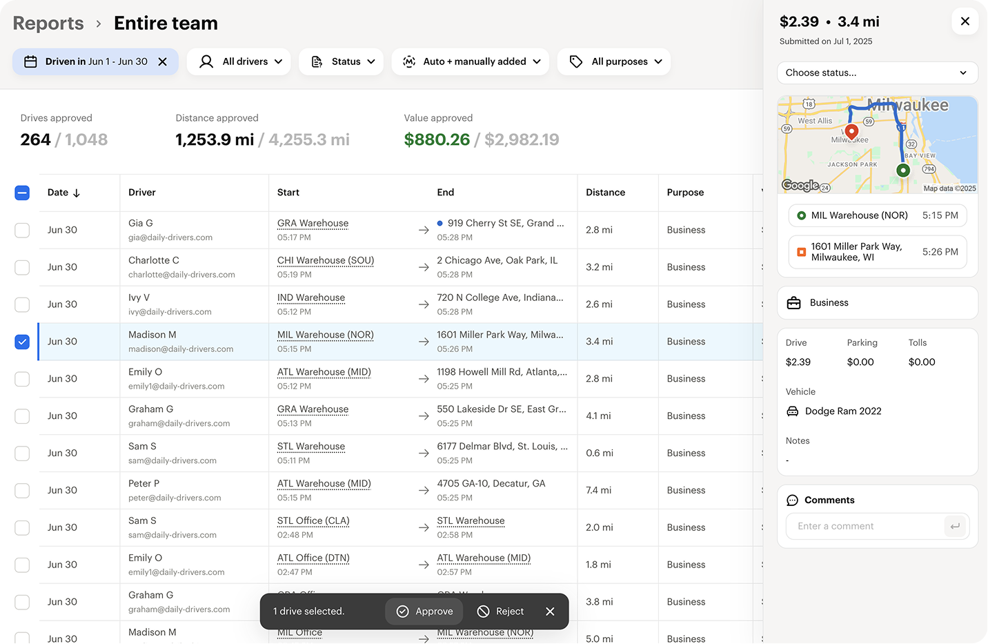 All things mileage made easier — whether you manage two drivers or two hundred.
